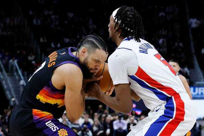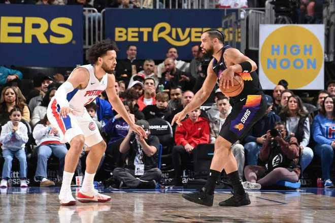 活塞上一場主場92-98惜敗快船,太陽上一場客場121-127惜敗熱火。本場太陽缺少布克、杰倫-格林,活塞缺少摩爾與里德。首節開局,活塞內外開花取得11-3領先優勢,太陽一波9-0攻勢反超比分,雙方交替領先纏斗至23-23。阿倫三分開火引領一波9-0攻勢拉開比分,首節比賽結束活塞23-32落后太陽。首節活塞26中9,其中三分12中3,坎寧安7中1(三分4中0)僅4分3助攻;太陽22中11,其中三分14中6,阿倫3記三分13分。
