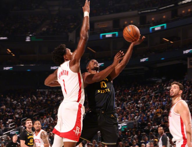 只剩一個勇士。勇士開賽以來23勝19負,穩坐西部第八,后面的開拓者、灰熊等球隊暫時追不上,但勇士距離前面的火箭、湖人還有一段距離。在過去14場比賽中,勇士戰績10勝4負,自從科爾確定棄用庫明加后,球隊看起來走上正軌。從高階數據來看,勇士場均控制失分113.2分,以及防守效率113.4都是聯盟第八,SRS值也悄悄進入聯盟前十,初步具備競爭力。但是又出現一個非常尷尬的問題,庫里似乎成了球隊贏球的反向指標。還有2個月,庫里將年滿38歲,本賽季薪資5960萬聯盟第一,場均28分5助攻,從產量來看也足夠。
