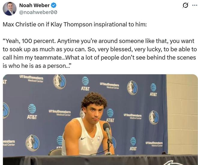隊友克里斯蒂被問到是否被克萊感染時說道:“沒錯,千真萬確,當你身邊有這種人時,你就會想盡辦法多向他學習,能和克萊成為隊友真的很幸運,我對此非常感恩,很多人看不到賽場之外的他,究竟是個多好的人。”