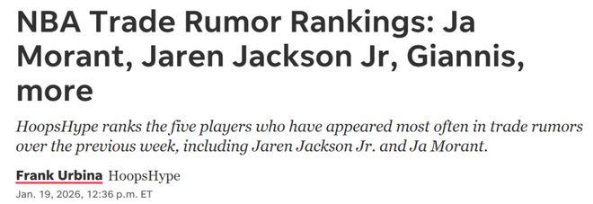 另外一方面是《雅虎體育》曝出聯(lián)盟內(nèi)高管普遍認(rèn)為,如果交易莫蘭特,那么小賈倫杰克遜將成為下一個被推倒的多米諾骨牌。