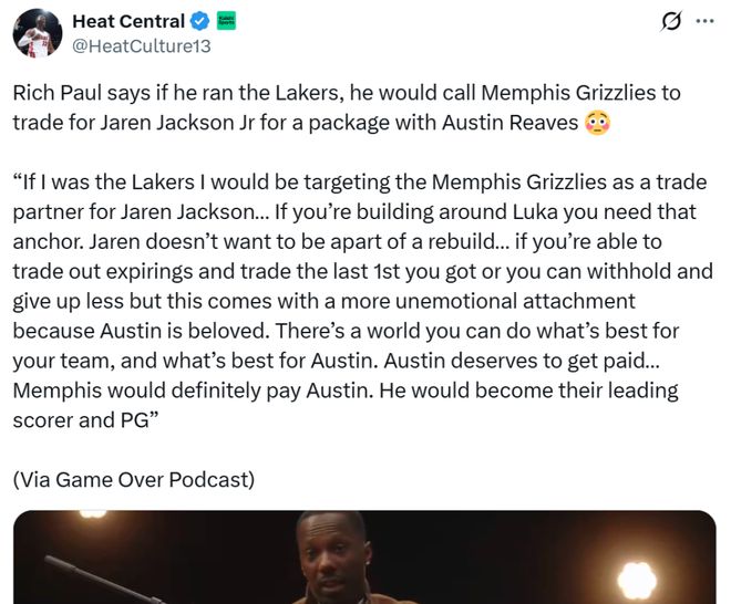 小賈倫杰克遜入選榜單的原因來自于兩個方面,一方面是詹姆斯經(jīng)紀(jì)人里奇保羅引起軒然大波的言論,他公開表示如果自己是掌舵者會愿意打包里夫斯+首輪簽追求小賈倫杰克遜。