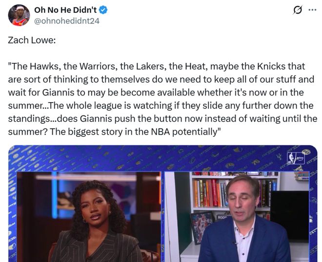 字母哥再度入選榜單,主要是因?yàn)槊沍ach Lowe曝出、紐約、勇士、湖人、等一眾球隊(duì)都在考慮是否保留全部籌碼以等待得到字母哥的潛在交易機(jī)會。