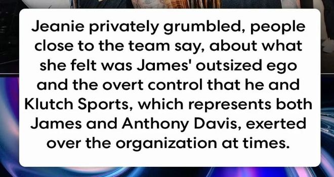 “珍妮以背叛身邊人和球隊(duì)功勛而出名,對(duì)杰里·韋斯特如此,對(duì)自己的哥哥吉姆也是如此,現(xiàn)在她甚至開始背叛湖人當(dāng)家勒布朗·詹姆斯。”