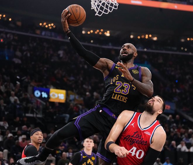 北京時間1月23日,NBA常規賽,湖人104-112逆轉快船失敗。此役湖人一度落后快船26分之多,進入末節還落后14分,末節湖人有兩波小高潮,一波16-7與一波10-2,這兩波小高潮都是由41歲的勒布朗帶領打出,只可惜湖人還是輸球,41歲的勒布朗空砍23+6+5。