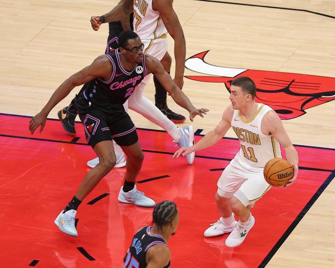 凱爾特人過去兩場連贏步行者與籃網收獲2連勝,公牛過去3場連贏籃網、快船與森林狼收獲3連勝,本賽季首次交鋒凱爾特人主場115-101戰勝公牛。本場凱爾特人缺少塔圖姆與米諾特,公牛缺少科林斯、瓊斯。首節前3分半鐘雙方纏斗至凱爾特人13-12領先,公牛連得4分反超,布朗上籃追分。公牛接連得分逐步擴大6分領先優勢,凱爾特人內外開花咬住比分,首節結束凱爾特人28-30落后。首節凱爾特人三分11中4,布朗7中4得到11分;公牛三分14中6,吉迪與武切維奇合計3中0得到0分。