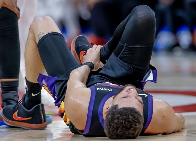 更無奈的則是布克,同樣是和老鷹的比賽,杰倫格林先退出比賽后,布克在跑動時,沒有注意到奧孔武,奧孔武也沒看到布克,布克誤踩對方的腳:嚴重腳踝扭傷!用主帥奧特的話說,布克的傷勢不太樂觀,球隊需要做好他缺陣的準(zhǔn)備,其他人需要站出來。但事情可能沒那么簡單,看一組數(shù)據(jù),本賽季布克在場時,太陽凈效率值是+5.1,聯(lián)盟第五水平,大致相當(dāng)于馬刺;布克不在場時,太陽凈效率值-0.5,大致相當(dāng)于湖人水平,聯(lián)盟第17位。一定有球迷疑問:湖人戰(zhàn)績不是和太陽差不多么?太陽沒布克能差到哪去?