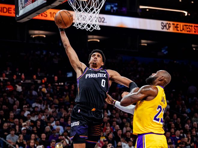 但湖人真是本賽季的個例!湖人本賽季大部分的贏球,過程都很艱難,輸球則很干脆,球隊基本上的模式是上半場東契奇爆發(fā),第三節(jié)和第四節(jié)前半段,詹姆斯帶著角色球員發(fā)力,能撐到關(guān)鍵時刻,那就有希望,撐不到那就是慘敗。湖人是沒有防守作為支撐的,替補席表現(xiàn)也很差,之前我們也分析了,湖人保持當(dāng)下-0.58的SRS值,最快到全明星周末,就能掉到和開拓者差不多的位置(開拓者SRS值是-0.54),這個數(shù)值會貫穿整個賽季,預(yù)估位置很精準(zhǔn)。但太陽不一樣,太陽本賽季SRS值2.71!