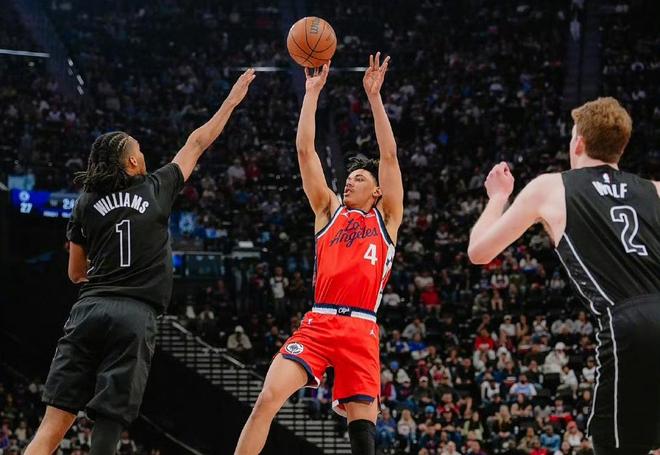 很快,籃網便陷入長達5分鐘的得分荒,快船一個超級攻擊波占據主動權,首節雙方分差就來到20分以上。第一節比賽結束,快船38-14領先籃網24分。次節比賽開始,小卡先造了一個三分犯規,三次罰球全部命中,幫助快船先下一城,緊接著倫納德連飆兩個三分都有,分差來到30分以上。曼恩的弧頂三分終于為籃網止血,隨后米勒跳步上籃又輕松命中。這才第二節剛開始,比賽勝負似乎就已經失去懸念。鄧恩的高弧度拋射繼續得手,倫納德高速推進,急停中距離正入網心,科林斯空切籃下,一個單手劈扣技驚四座,半場比賽戰罷,快船68-37領先籃網31分。