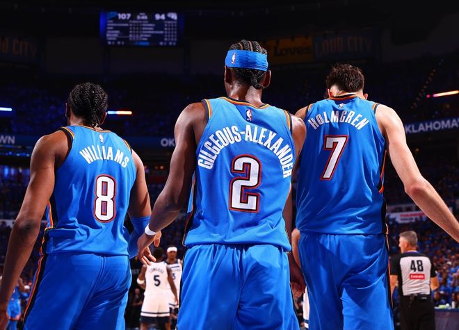 亞歷山大自己也說:我們只讓對手拿103分,通常我們能贏,但就是運氣不佳。這里就有問題了,雷霆前25場比賽贏下24勝時,也是缺兵少將,但自從亞歷山大+杰威+霍姆格倫三巨頭合體后,球隊勝率直線下降!雖然這三人本賽季在場合計打了334分鐘,百回合能贏對手15.7分,也高居球隊整體凈效率值(+12.8)。那問題出在哪里?從續約薪資角度,雷霆是三巨頭模式,亞歷山大去年夏天4年2.85億超級頂薪續約,杰威和霍姆格倫5年2.39億,但體現在數據上的可不是這樣,亞歷山大場均32分,霍姆格倫場均17.8分,杰威場均16.8分。