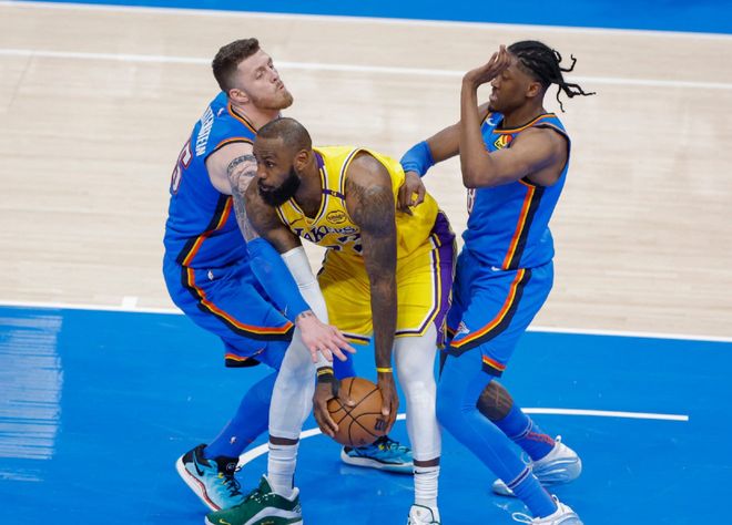 前25場比賽,他們依靠反擊+尺度不一致性的紅利,打出了超越歷史的凈效率值,但無法保持長久。亞歷山大身邊缺少穩定第二得分點的客觀事實,又讓雷霆在關鍵時刻打得很掙扎,對手只要夾擊亞歷山大即可。一個懸殊的數據對比,亞歷山大BPM值12.2,雷霆隊第二的霍姆格倫,只有3.8,而名義上的二當家杰威,BPM值是1.5隊內第七,這肯定是不夠的。所以雷霆本賽季打到關鍵時刻的比賽,就給人一種錯覺:亞歷山大必須造犯規,罰球才是他們穩定上分的手段。但整體高度和對抗的欠缺,又讓他們防守端捉襟見肘。