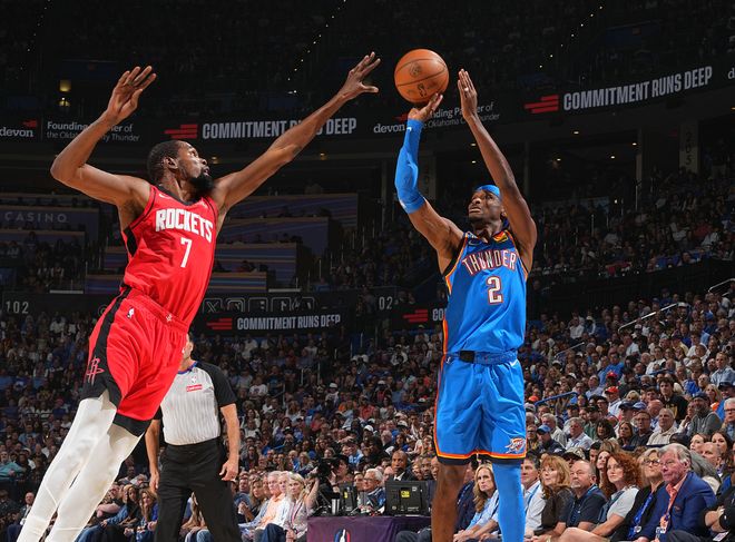 而拿著1200萬年薪的伊塞亞喬場均14分,和二當家三當家差距不大。本質上雷霆是一位超巨帶一整個團隊。杰威自從傷愈回歸后,狀態一直不好,輸球對應的球權占有率是26.5%,贏球對應他的球權占有率是25.0%,差距可能不算大,但正負值合計相差29.5!霍姆格倫也是如此,本質上他場均18分左右輸出,和生涯第二個賽季差不多,整體效率也沒明顯提升,而他面對潛在最大對手的馬刺,在文班亞馬面前一點勝算都沒有。更關鍵的是,雷霆全隊三分球出手數+命中數都是聯盟第16位,中游水平,沒有穩定性。