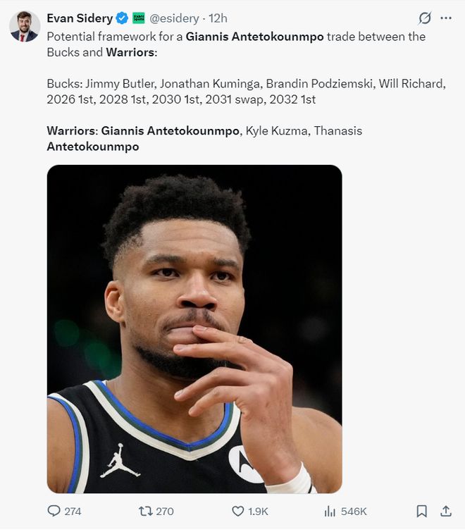 《福布斯體育》記者埃文-斯迪瑞透露,勇士隊(duì)除了能送出4個(gè)首輪簽外,他們2031年的首輪互換權(quán)也可以用于交易揚(yáng)尼斯,而如今的難點(diǎn)在于如何配平薪資。