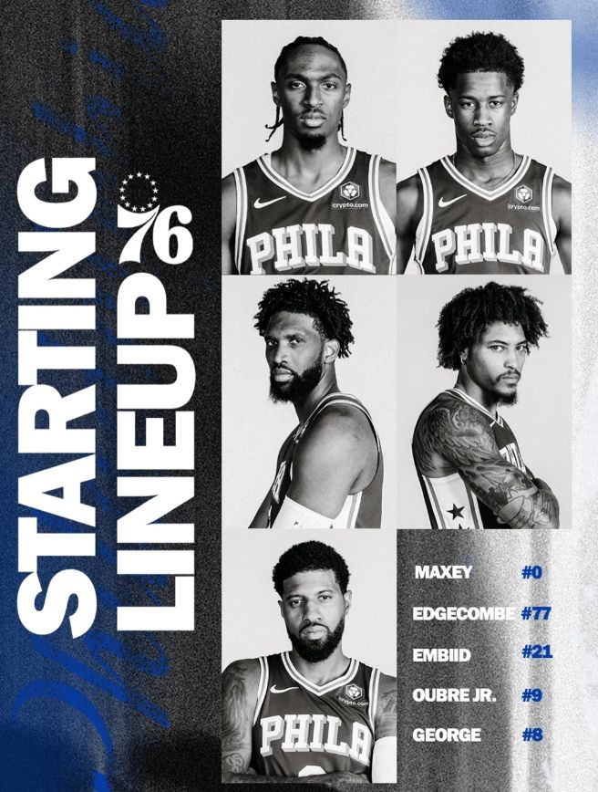 首發陣容方面,76人隊這邊,三巨頭均可出戰,排出的最新首發五人組為:烏布雷、保羅-喬治、馬克西、恩比德、VJ-埃奇庫姆;國王隊這邊,威少傷缺,拉文替補出戰,首發陣容則為:施羅德、克利福德、德羅贊、阿丘瓦、薩博尼斯。