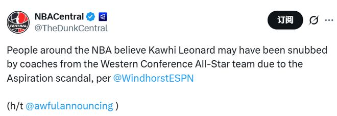 西部全明星的七個替補名額由教練們投票選出,但他們跳過了萊昂納德。根據文霍斯特的爆料,或許是受到了他與快船贊助商存在“虛假代言”爭議的影響。教練組與聯盟方面大概率不希望,這項NBA年度盛會的焦點被一個仍在調查中的事件奪走。