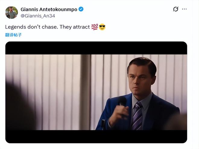 北京時間2月6日,交易截止日過去了,字母哥依然留在雄鹿,沒有被交易到其他球隊。他本人也在截止日過后更新社媒,寫道:“傳奇從不會主動追逐,只會自帶引力。”字母哥還轉(zhuǎn)發(fā)了一個電影片段,里面主演萊昂納多說道:“我TMD不會離開,這是我的主場。”