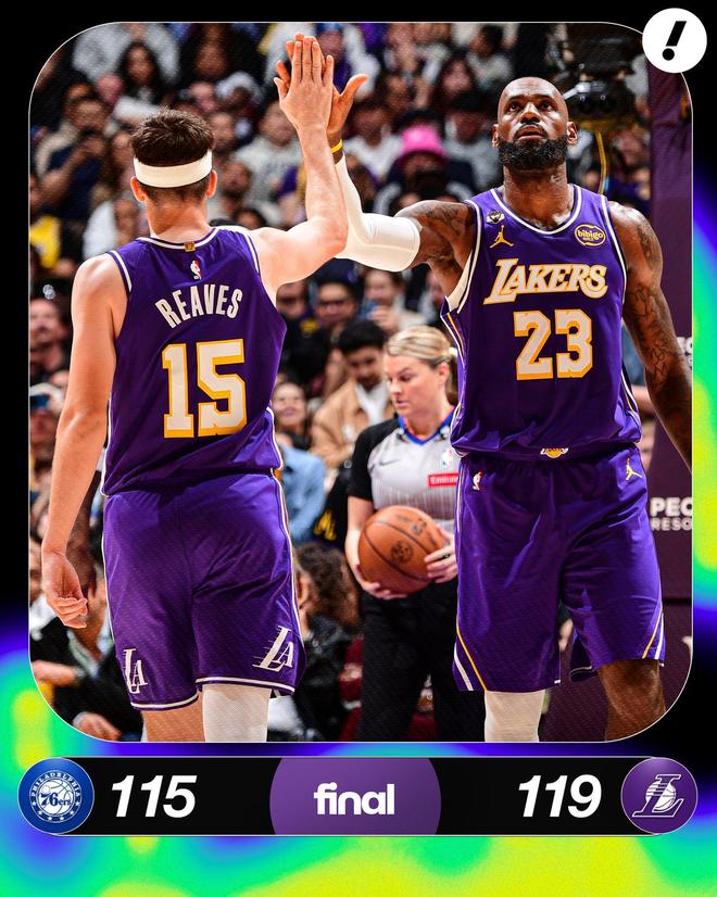 實際上,湖人現在真的值得期待,不僅僅是因為肯納德的加入,還在于里夫斯的歸來依舊是全明星水準,本場比賽,里夫斯出戰24分鐘,17投12中,其中三分球8投5中,得到35分6籃板2助攻。據統計,這是里夫斯第二次砍下35+且真實命中率超過85%,隊史僅次于詹姆斯的4次,此外,本場里夫斯創下了湖人隊史上得分超過35分但出場時間最少的紀錄。