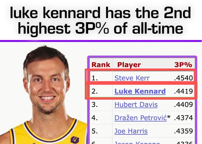 而拉長到整個職業生涯,他的三分命中率高居44.19%,位居歷史第二,僅次于史蒂夫·科爾一人。