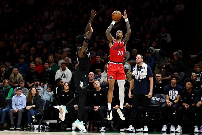 本場比賽中,快船的先發大前鋒約翰-科林斯(John Collins)的表現算得上是令人刮目相看。科林斯全場出場29分17秒,投籃9中6,三分線外3中3,得到了14分4籃板1搶斷1蓋帽的數據,還有3次失誤和4次犯規,正負值也是達到了全場次高的+25。科林斯在本場比賽中又一次打出了攻守兼備的表現,他在進攻端在外線投籃方面的穩定性相當驚人,他也能夠在對手內線制造一定的威脅,而且他在防守端也具備不俗的個人防守能力,在運動能力方面的優勢非常明顯。科林斯的出手次數并不多,戰術地位也并不高,但是他還是通過自己的努力在攻防兩端都展現出了不俗的個人能力,而且場上效果也是非常突出的。總體來看,科林斯的一系列出色表現也是球隊能夠輕松戰勝對手的關鍵因素。