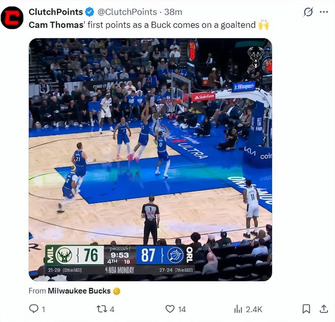 北京時間2月10日托馬斯迎來雄鹿首秀,面對魔術(shù)隊這支防守球隊,全場13分托馬斯就命中了這一個運動戰(zhàn),5中1,三分1中0,罰球2中2,拿4分1籃板1助攻,命中率20%,正負(fù)值-1。