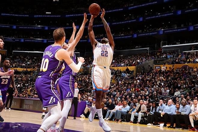 在此前的一場NBA常規(guī)賽中,俄克拉荷馬城雷霆經(jīng)過苦戰(zhàn)后以119比110戰(zhàn)勝了主場作戰(zhàn)的洛杉磯湖人。本場比賽后,結(jié)束了兩連敗的雷霆的戰(zhàn)績提升到了41勝13負(fù),繼續(xù)排名西部榜首位置,與身后的圣安東尼奧馬刺的勝場差為4場;而結(jié)束了3連勝的湖人的戰(zhàn)績則是下滑到了32勝20負(fù),繼續(xù)排名西部第5位,與身前的休斯頓火箭和身后的明尼蘇達(dá)森林狼的勝場差均為半場。