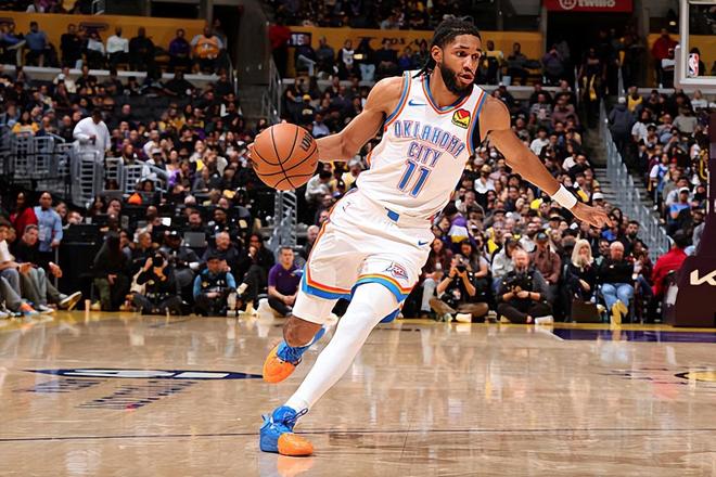 本場比賽中,雷霆的替補外線投手以賽亞-喬(Isaiah Joe)的表現算得上是令人刮目相看。喬全場出場27分27秒,投籃13中6,三分線外8中4,罰球3中3,得到了19分3籃板2助攻2搶斷的數據,還有1次失誤和2次犯規,正負值也是得到了全場次高的+14。喬在進攻端大殺四方,他展現出了相當不錯的投射能力,他也是抓住了機會拿下了不少分數,在進攻端承擔起了大量的任務。除此之外,喬在防守端的表現也是可圈可點的水平,同樣是發揮出了自己的特點,起到了關鍵的作用。值得一提的是,喬在上半場比賽中就拿下了16分,這也是球隊能否保持分差的關鍵因素,否則他們可能早就被對手拉開比分了。