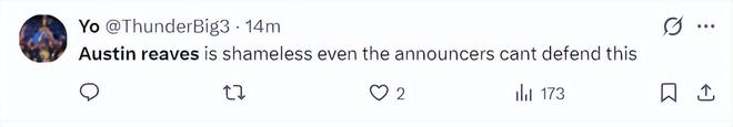 雷霆球迷:里夫斯的造犯規簡直無恥至極,就連解說員都無法為他辯解了。