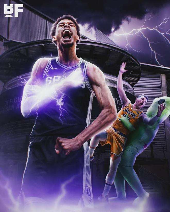 湖人進攻還算不錯,首節得到30分,但馬刺全隊單節轟下47分。文班亞馬第一節只打了8分鐘,9投8中狂轟25分3籃板1搶斷1蓋帽,一個人打爆湖人全隊。第二節海斯多次在籃下單挑文班亞馬,一個人連拿7分,隨后湖人連續失誤。