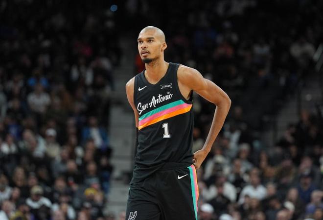 由于比賽早早失去了懸念,文班亞馬也早早打卡下班,在只出戰(zhàn)26分鐘的情況下,靠著20次出手命中13球的發(fā)揮,其中三分球6中4,用40分、12個(gè)籃板、2次助攻、2次搶斷和1個(gè)封蓋填滿了數(shù)據(jù)欄,成為了球隊(duì)大勝的最大功臣。