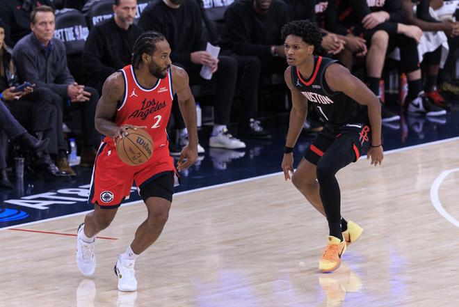 兩隊的上次交手,烏度卡用伊森單防萊昂納德,讓阿門對位鄧恩,從而進行協防和包夾,在替補銜接段用電風扇對位萊昂納德,但是如果伊森和電風扇都不打,那么火箭的輪轉球員將變成奧科吉和泰特,奧科吉的防守能力并不差,但是相較伊森體型和身高相對吃虧,泰特的體型和身高雖然能對位對得上萊昂納德,但是本賽季泰特長時間不在輪轉陣容中,階段性的偶爾被烏度卡予以奇兵使用,效果在賽季初糟糕,在近期還不錯。