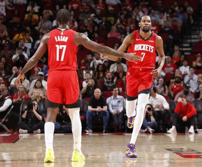 進入下半場,2隊打的都有些混亂,火箭隊單打過多,而效率不高,在場上頻繁打鐵,快船隊雖然手感也不好,但是靠著快攻和反擊,球隊擴大場上的領先!眼看局面愈發不妙,杜蘭特、阿門挺身而出,內突外投連續取分,火箭終于扭轉了場上的頹勢,3節結束反超快船6分!末節比賽更是陷入一邊倒,阿門反擊,申京內線連續取分,謝波德也在外線開火,火箭打出一波進攻高潮,迅速把分差拉大到2位數以上!小卡、科林斯帶領快船試圖追趕,但火箭的嚴防死守根本不給他們機會,面對2位數的分差,快船早早選擇投降,派上了馬瑟琳和第3陣容出戰,球隊一度把分差追到個位數,但隨著小史密斯內線取分,杜蘭特2罰全中,比賽還是失去懸念,火箭最終102:95拿下勝利!