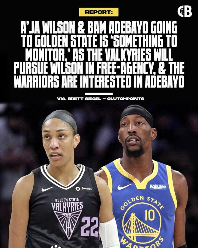 值得一提的是,阿德巴約女友四屆WNBA最有價值球員阿賈-威爾遜還是拉科布和女武神在自由市場的目標,這意味著,阿賈-威爾遜和阿德巴約這對在一起數年的情侶有希望成為兩支金州球隊的門面。