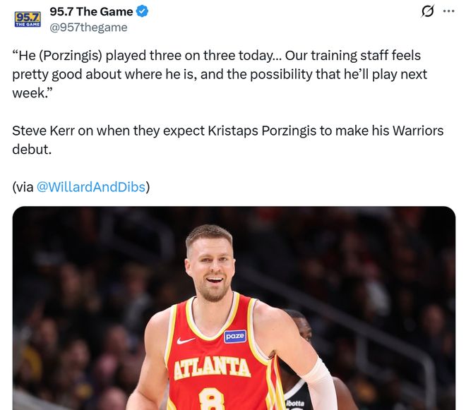 同時他透露勇士與波神的目標是在全明星后對陣凱爾特人的比賽中完成勇士首秀,復出初期計劃是短時間、分時段登場。