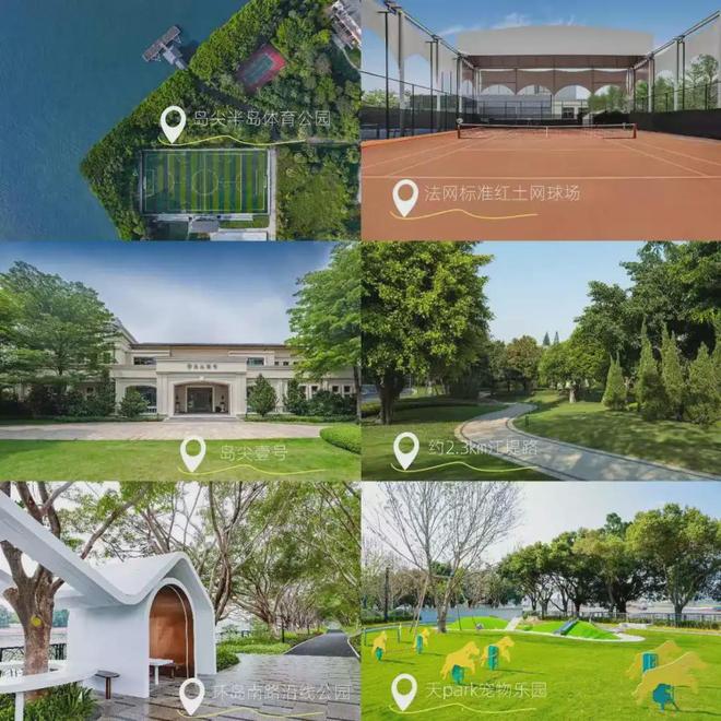 據介紹,這里的場地配置均與國際接軌:室內外雙泳池采用與水立方同源的奧運級設備,配備獨立的干蒸房與濕蒸房;網球場為廣州首批法網規格的紅土賽場,隔壁是澳網主題配色的硬地網球場。還設室內虛擬高爾夫、三合一功能影音室等文娛設施,及島尖的標準足球場。