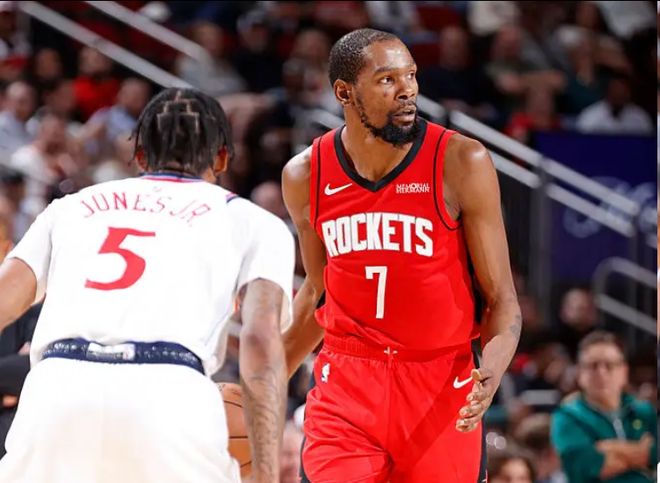 杜蘭特被問到上次快船和火箭交手,投進了20個三分時說:“我覺得我們的身體對抗強度提升了。而且,詹姆斯-哈登沒上場也有幫助,少了一個能創造進攻、帶動全隊的人。但我覺得我們還是必須在身體對抗方面下功夫。”