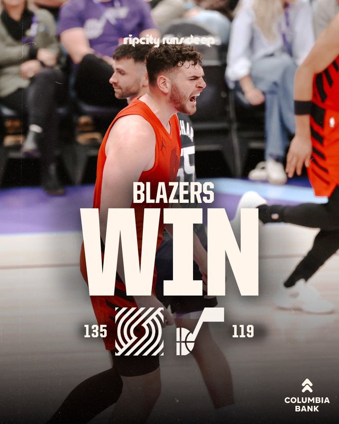 開拓者隊的霍勒迪得到31分、9個籃板和7次助攻,克林根得到23分、18個籃板和7次助攻,格蘭特得到18分,亨德森得到15分和4次助攻,卡馬拉得到14分和8個籃板,科雷季奇和勒夫各得到11分,楊瀚森替補出場3分7秒,1投0中,兩罰全中得到2分。爵士隊的森薩鮑夫得到28分和4個籃板,科里爾得到15分和9次助攻,菲利波維斯基得到15分和9個籃板,貝利得到15分和8個籃板,米哈伊柳克得到14分,辛森得到11分。