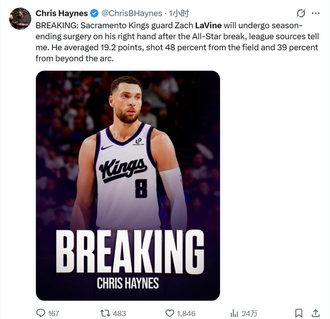 扎克-拉文將在全明星后接受手術,本賽季宣布報銷。