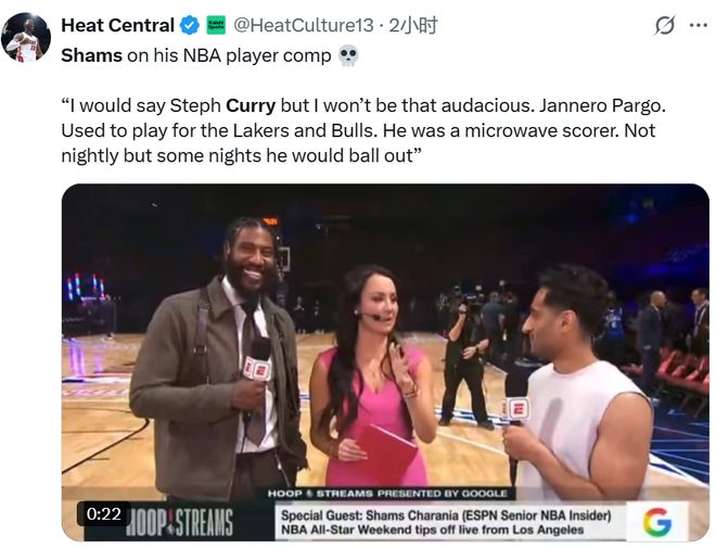 但Shams也不甘示弱,接受采訪被問到自己模版是誰。他則是毫不掩飾“我覺得我是庫里。”