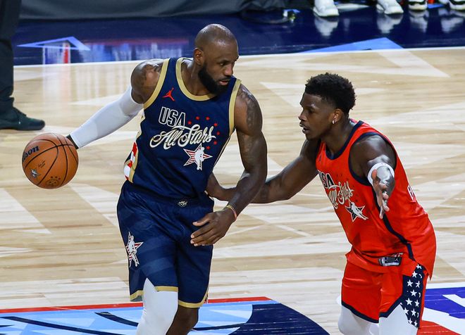 然后開打的是星條隊vs新星隊,打了12分鐘后星條隊42-40擊敗了新星隊,星條隊方面:布朗打了9分23秒,9中5(三分3中1)得到11分3板1帽,詹姆斯打了7分23秒,4中2(三分3中2),2罰2中,得到8分1板1助1斷。新星隊方面:坎寧安打了8分59秒,6中4(三分2中1),2罰2中,得到11分3板4助1帽,愛德華茲打了8分59秒,8中5(三分4中1)得到11分3板1助1斷。