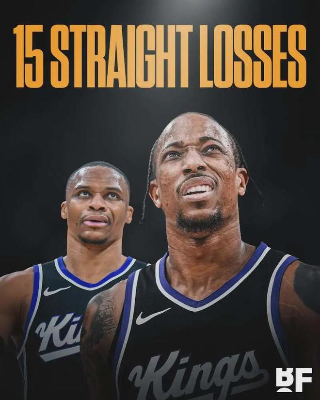 目前國王隊12勝45負,聯(lián)盟倒數(shù)第一。已經(jīng)遭遇15連敗,創(chuàng)造78年隊史最長連敗紀錄。國王隊前身是羅切斯特皇家隊,1948年成立并加入NBA。之后又更名辛辛那提皇家隊、堪薩斯城國王隊等,1960年和1972年兩次遭遇14連敗!
