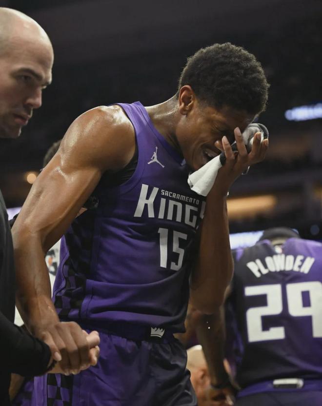 當時亨特左眼出血,被診斷為左眼虹膜炎。經(jīng)過兩周保守治療并未好轉(zhuǎn),只能選擇手術(shù)。亨特在國王場均出戰(zhàn)25.5分鐘,僅得7.5分1.5籃板0.5助攻2失誤,三項命中率:21.1%,22.2%,83.3%。合同4年9000萬,2027年夏天到期。