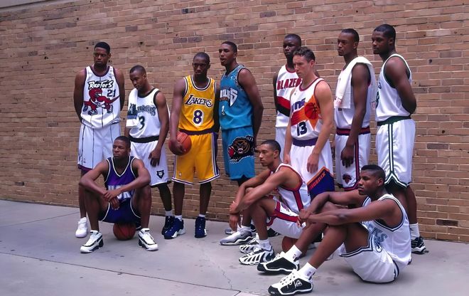 好了,這就是這張經典照片上所有的11名球員,有人可能就奇怪了,為何這一屆新秀里最重要的人,狀元秀阿倫-艾弗森不在上面?
