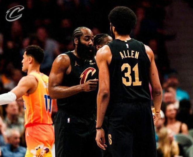 騎士隊(duì)這邊,哈登14投6中,其中三分球3投2中,罰球4投4中,砍下18分3籃板8助攻1搶斷,生涯第1200場(chǎng)常規(guī)賽,升至NBA歷史第50位,單打占比提升至41.1%,高居全聯(lián)盟第一,42次造三分犯規(guī)次數(shù)同樣高居聯(lián)盟第一,連創(chuàng)3大NBA神跡;米切爾22投9中,罰球13投12中,狂轟32分3籃板4助攻2搶斷,超越坎比·拉塞爾的6588分,升至騎士隊(duì)史得分榜第12位;艾倫15中11高效砍下26分14籃板2助攻1蓋帽。