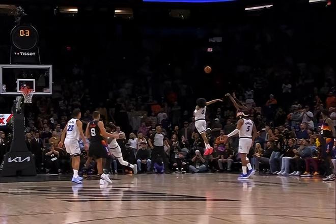 第三節(jié)的時候,狄龍手受傷了,沒法再打,太陽這邊輪換球員不夠,有點被動。而貝恩依舊火力全開,接著擴大分差。就在太陽快頂不住的時候,馬威在內(nèi)線頻頻得分,幫著太陽又一次反超了比分。之后兩隊就陷入了拉鋸戰(zhàn),誰也拉不開差距。第三節(jié)結(jié)束,太陽77比73,還是領(lǐng)先4分,這一節(jié)古德溫一個人就拿了10分,是太陽反超的大功臣。到了第四節(jié),太陽又開始靠三分發(fā)力,再次把分差拉到兩位數(shù),可魔術(shù)沒放棄,連著拿了8分縮小了差距。沒過多久,古德溫也受傷下場了,魔術(shù)抓住這個機會,布萊克連著兩次反擊扣籃,直接把比分追平了。最后時刻,魔術(shù)的吉萊斯皮試著投壓哨三分,可惜沒進,比賽以96比96平,進入第一個加時賽。