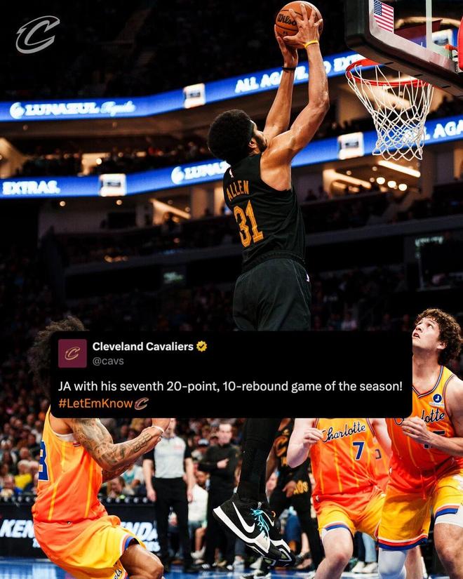 以及不可忽略的,在莫布利缺席的情況下,賈萊特阿倫再次扛起了騎士內線。