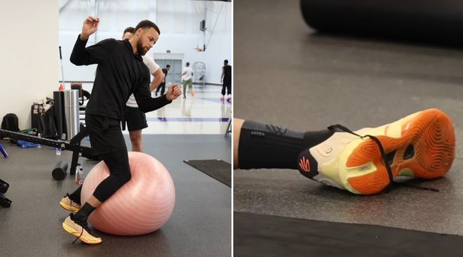 周日下午,全明星期間庫里與約內(nèi)斯庫、歐文一同訓練的照片和視頻流出:他上腳了安踏狂潮5二代,鞋跟位置赫然印有庫里品牌的Logo。