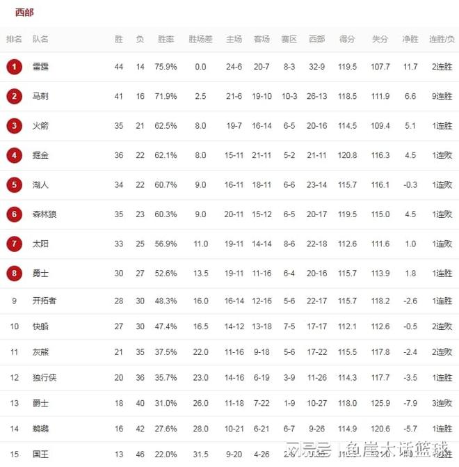 同時活塞輸?shù)舯荣惡舐?lián)盟第一的位置也易主,本場比賽后,活塞戰(zhàn)績來到42勝14負,勝率被雷霆(44勝14負)反超,讓出聯(lián)盟第一寶座。至于馬刺贏得比賽后排在西部第二的位置,畢竟馬刺只落后雷霆2.5個勝場。國王在今天的比賽中對陣灰熊,國王在近期已經(jīng)是遭遇了16連敗,如今面對傷兵滿營的灰熊,國王也應(yīng)該抓住機會止住球隊頹勢才行,而這場比賽國王也確實建立領(lǐng)先,雖然后續(xù)灰熊確實追近比分,但是國王這場比賽是多點開花,而且在關(guān)鍵時刻威少還能夠命中三分,最終威少帶領(lǐng)國王贏得比賽勝利結(jié)束了球隊16連敗。