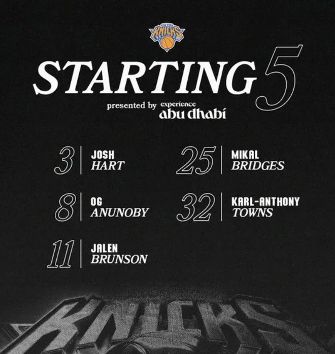 首發陣容方面,騎士隊這邊,斯特魯斯(左腳骨折)無法出戰,教練阿特金森排出的最新首發五人組為:詹姆斯-哈登、多諾萬-米切爾、迪恩-韋德、埃文-莫布利和賈勒特-阿倫;尼克斯隊這邊,除了麥克布萊德其余球員均可出戰,首發陣容則為:布倫森、阿奴諾比、布里奇斯、哈特、唐斯。