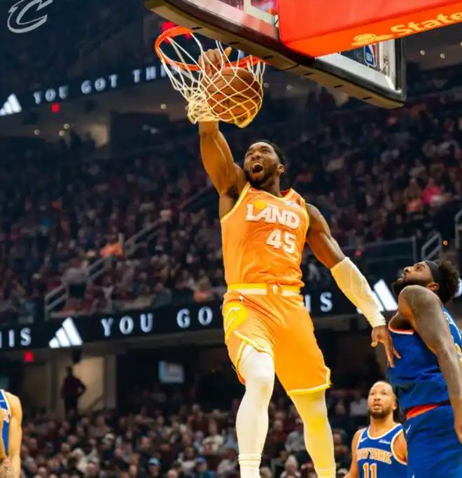 哈特持球反擊一條龍,倚住防守上籃打中止血。哈登擊地妙傳,阿倫頂著人挑籃打成2+1,隨后強攻籃下,迎著三人防守高難度拋投得手。米切爾跟進籃下接球 騰空暴起單臂掄圓炸筐戰斧劈扣,落地后怒視米羅,鎖定今日十佳球。米切爾吸引防守送擊地妙傳,韋德三分壓哨命中,首節打完,騎士35-26領先尼克斯。