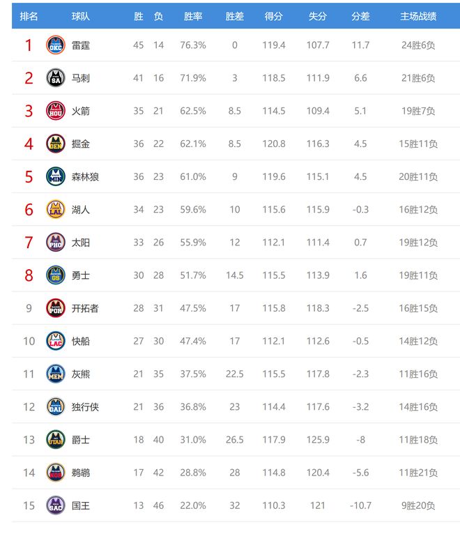 雷霆贏球后3連勝,戰績45勝14負,排名聯盟第一。