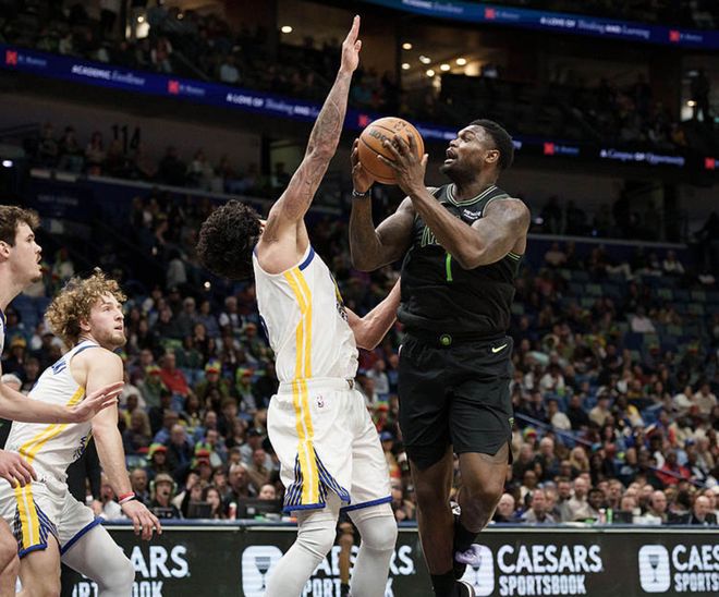 勇士客場挑戰鵜鶘,勇士少了庫里、巴特勒、霍福德、波津,鵜鶘方面穆雷復出,迎來賽季首秀,墨菲缺陣,鵜鶘先聲奪人,一度領先20分,勇士強勢追分,一度反超比分,但功虧一簣,最終鵜鶘113-109擊敗勇士。錫安21中11得到26分6板2斷,薩迪克貝13中6得到18分6板,勇士方面梅爾頓21中8得到28分4板3助,穆迪13中7得到24分5板3助,波杰姆18中7得到16分15板3助2斷。